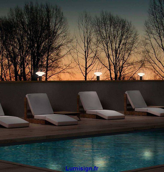 Dans les zones humides ou près des piscines, misez sur l'étanchéité avec des bornes classées IP65 minimum. Privilégiez des matériaux résistants comme l'acier inoxydable, l'aluminium traité ou la fonte spécialement protégée. Une puissance de 420 lm par borne offre généralement un bon compromis entre sécurité et convivialité.