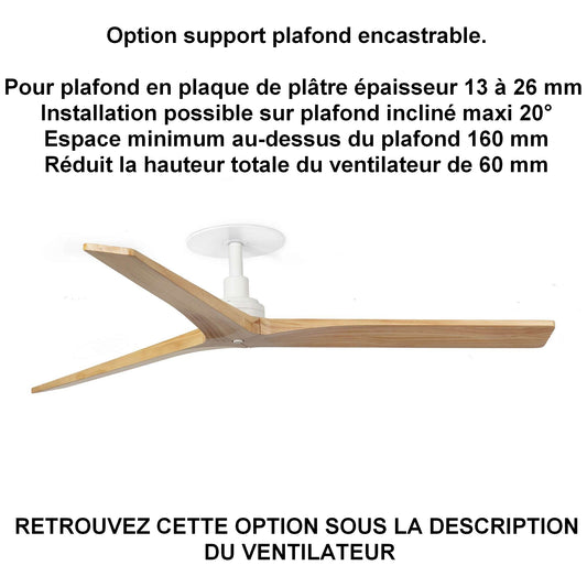 Pour une installation sécurisée, faites appel à un électricien professionnel si vous n'êtes pas familier avec ce type de montage. Les modèles les plus pratiques disposent de pales facilement accessibles pour le nettoyage et incluent une télécommande. Contrôlez d'abord la compatibilité avec vos boîtes d'encastrement et la capacité de charge de votre plafond, surtout si le ventilateur intègre un éclairage. Pour les faux plafonds, prévoyez un renfort structurel avant l'installation. Des kits spéciaux permettent d'adapter le montage aux plafonds inclinés (jusqu'à 20°) et de consolider les faux plafonds.