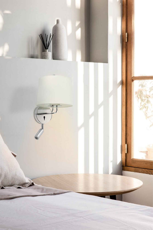 Applique de chevet avec liseuse MONTREAL chrome avec abat-jour blanc