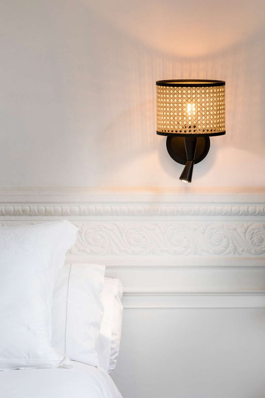 Applique de chevet avec liseuse MAMBO en rotin