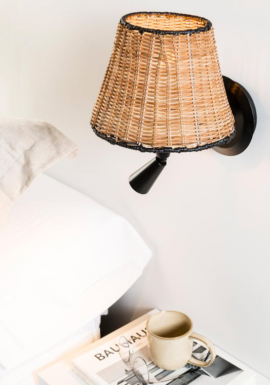 Applique de chevet avec liseuse SUMBA noir/rotin