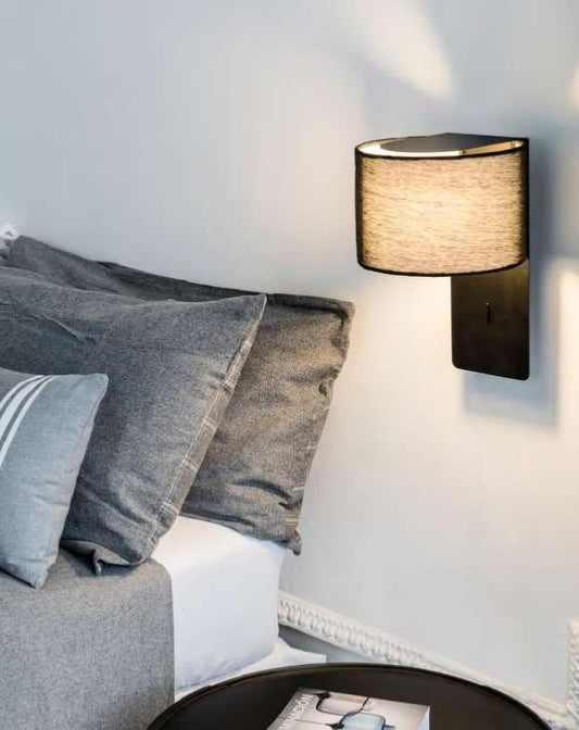 Applique de chevet avec liseuse MONTREAL blanche avec abat-jour beige