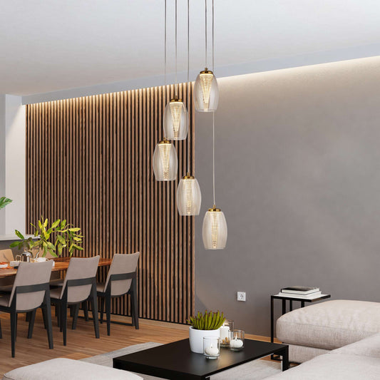 Suspension CYCLONE 5 lampes verre champagne
