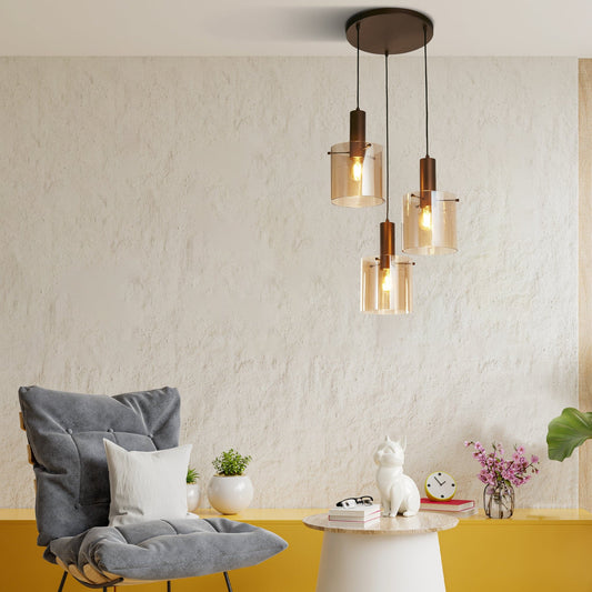 Suspension MIA 3 lampes verre ambré