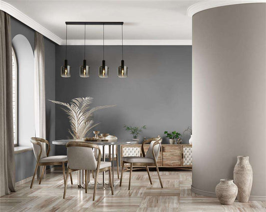 Suspension SWEDEN 4 lampes verre fumé noir