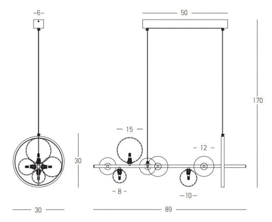 - La suspension aérienne pour la table à manger, disponible en noir, blanc ou doré.