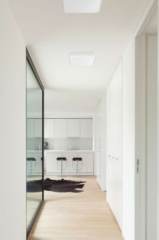 - Esthétique épurée : leur extrême finesse permet l'installation discrète de plafonniers plats, parfaits pour un bureau ou une entrée.