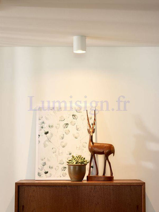 Le choix entre un spot en saillie noir et blanc repose surtout sur des critères esthétiques. Le modèle noir apporte une touche moderne et graphique, alors que le blanc se marie discrètement avec le plafond pour une intégration parfaite.