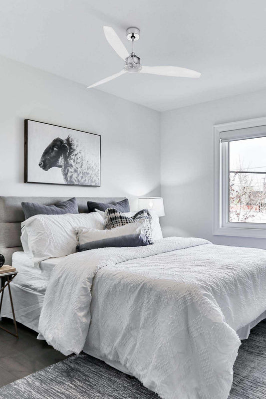 - Positionnement stratégique : Installez votre ventilateur plafond au centre de la pièce pour une distribution uniforme de l'air.