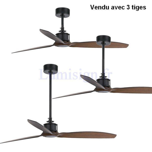 - Bois : Les ventilateurs en bois apportent une touche chaleureuse et naturelle à votre intérieur. Leur finition peut varier de rustique à moderne, permettant une intégration harmonieuse dans différents styles décoratifs. Toutefois, il est essentiel de noter que les ventilateurs en bois peuvent avoir besoin d'entretien régulier pour préserver leur apparence et éviter la déformation due à l'humidité.