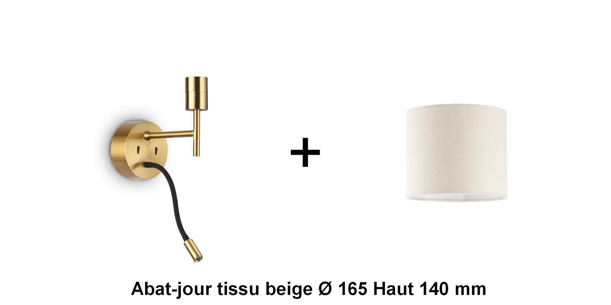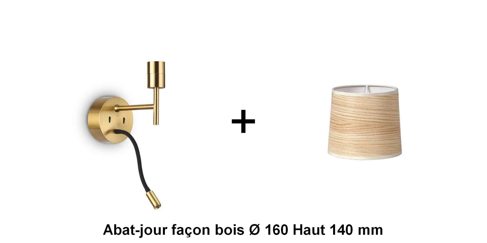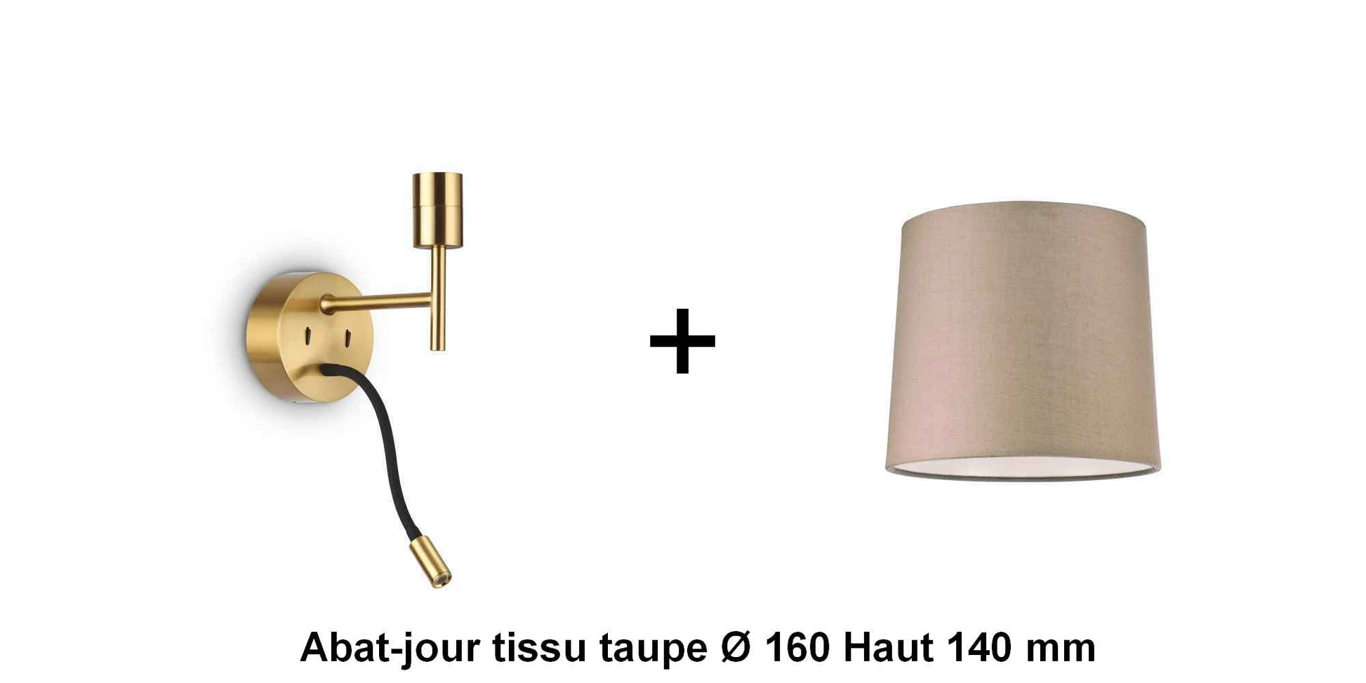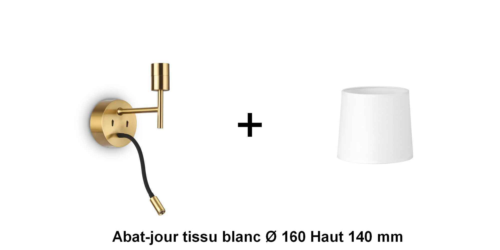 L’applique liseuse laiton SET-UP à composer vous-même allie élégance et fonctionnalité. Elle propose quatre tailles d’abat-jour et quatre finitions, avec des tissus ignifugés en blanc, beige, taupe ou noir, ainsi qu’un abat-jour en PVC imitation bois.