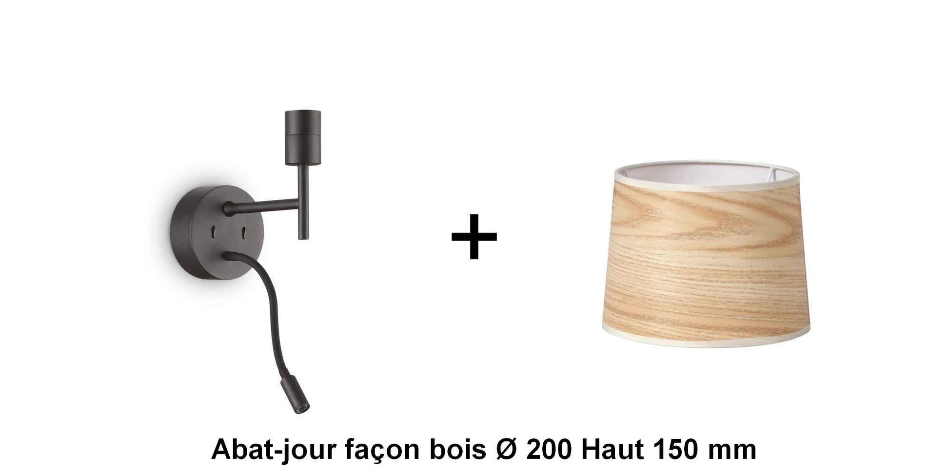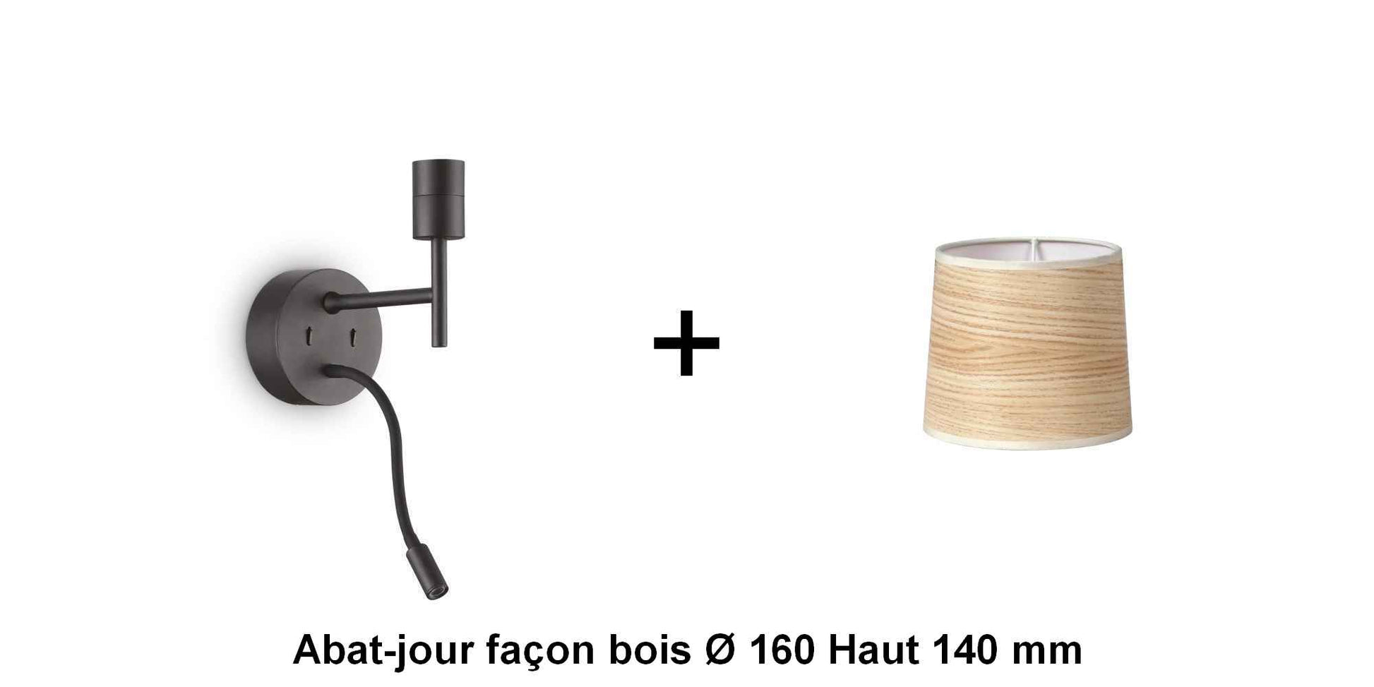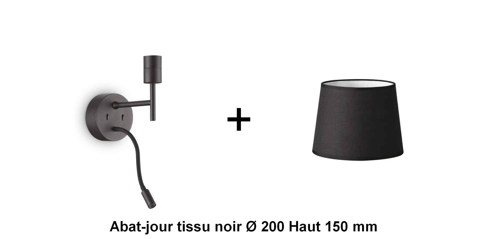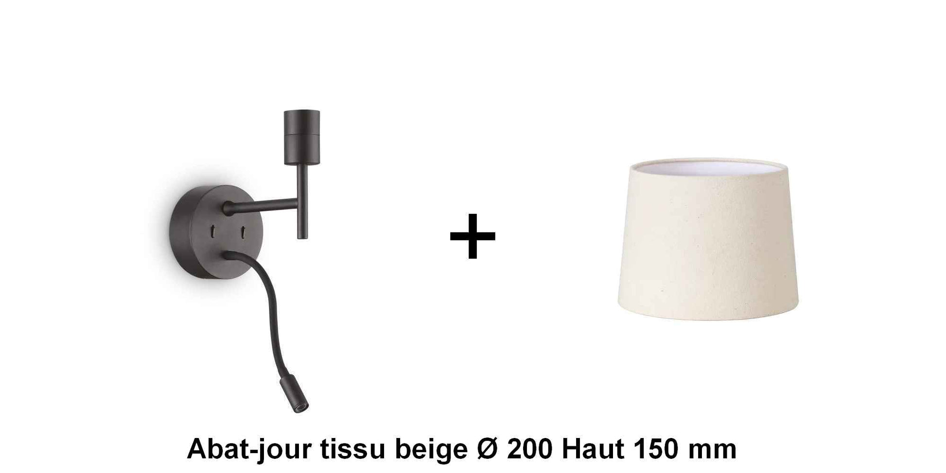 Fabriquée en métal peint par poudrage, cette applique allie robustesse et esthétique. Vous pouvez composer votre modèle en choisissant parmi 4 tailles d’abat-jour et 4 finitions en tissu ignifugé (blanc, beige, taupe, noir) ou en PVC façon bois, pour une personnalisation totale. De plus, elle est accompagnée d’une liseuse LED 3W 200LM 3000K fournie.