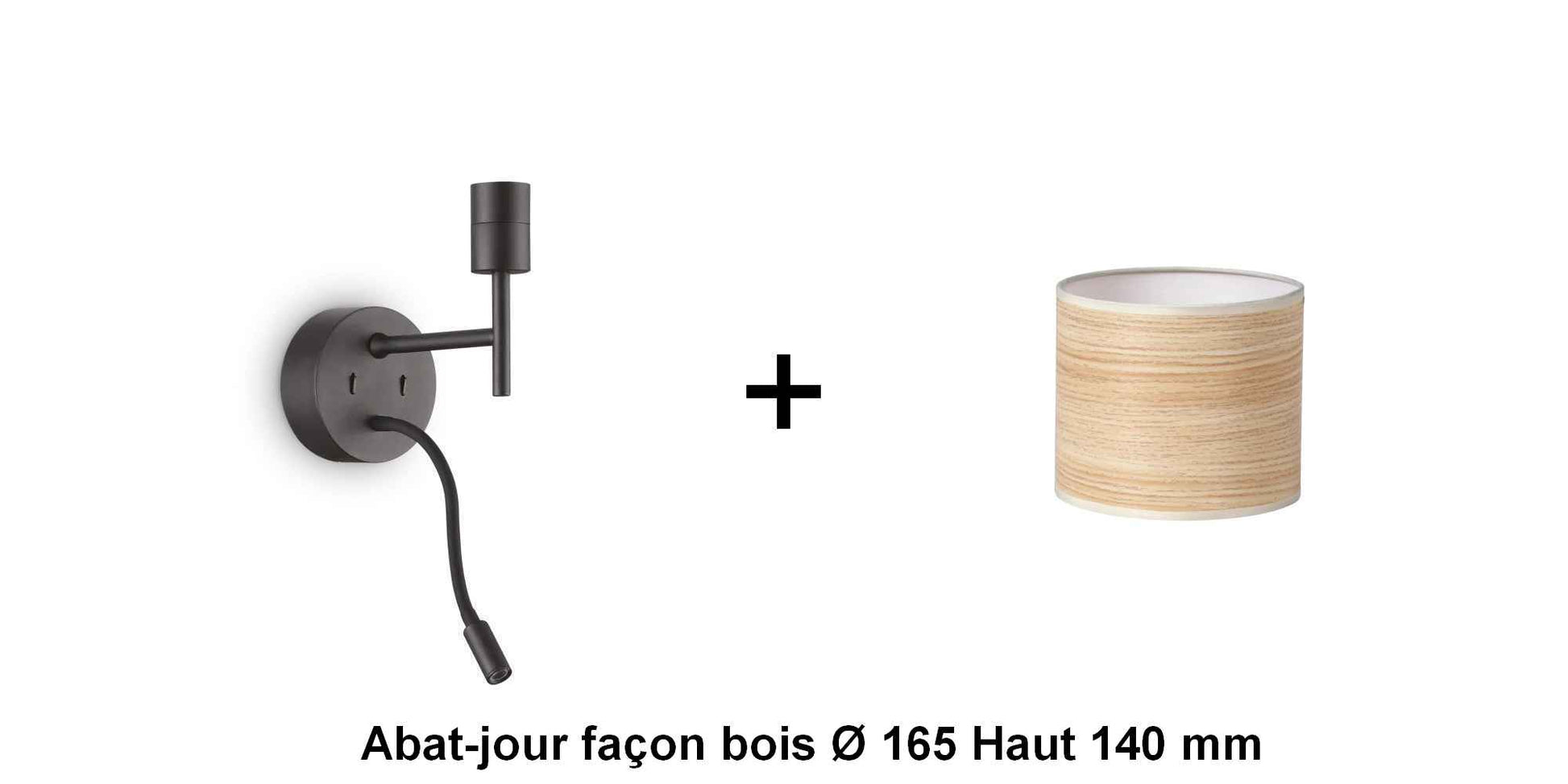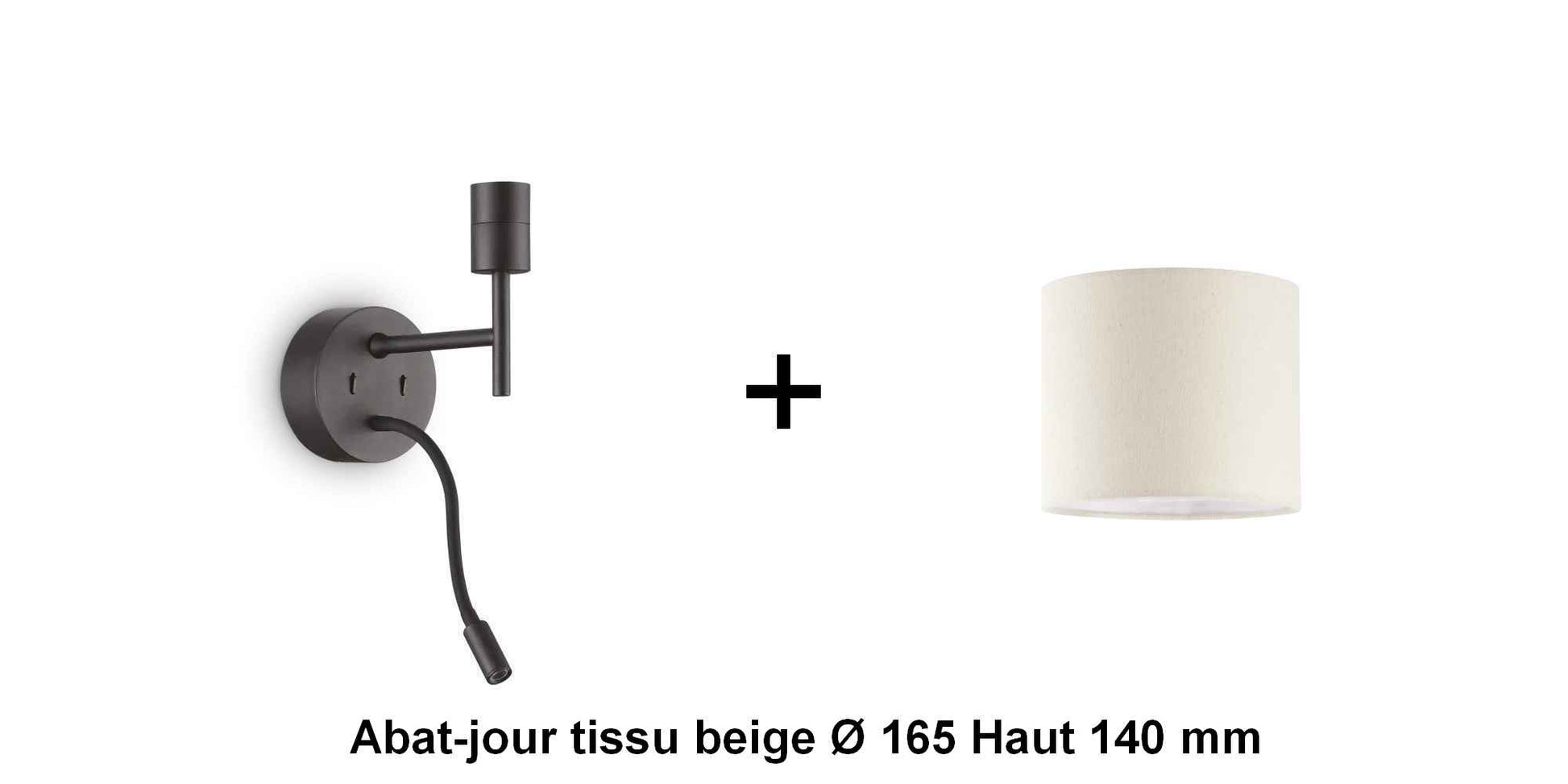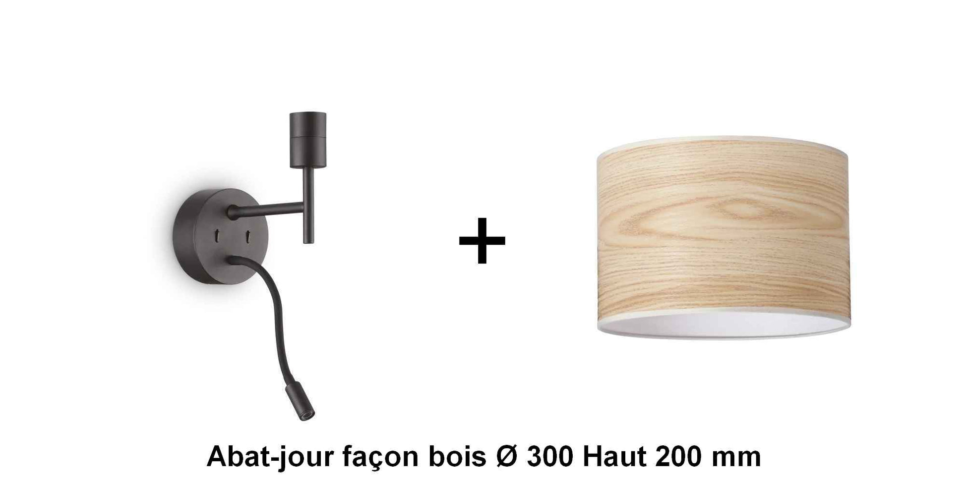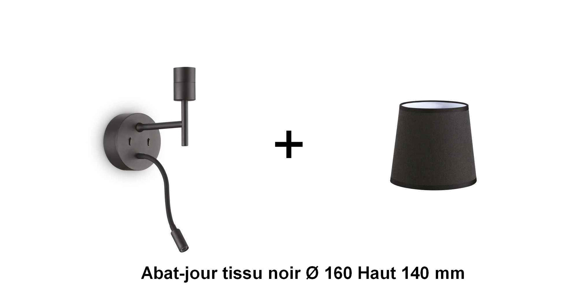Fabriquée en métal peint par poudrage, cette applique allie robustesse et esthétique. Vous pouvez composer votre modèle en choisissant parmi 4 tailles d’abat-jour et 4 finitions en tissu ignifugé (blanc, beige, taupe, noir) ou en PVC façon bois, pour une personnalisation totale. De plus, elle est accompagnée d’une liseuse LED 3W 200LM 3000K fournie.